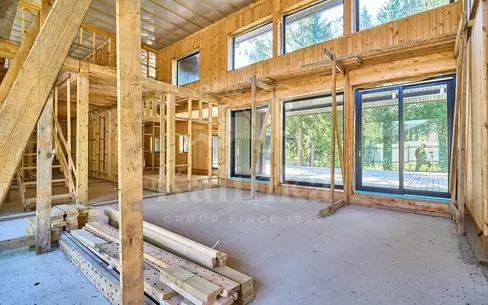№159579 Сосновый Бор Деревянный дом из соснового бруса с применением высококачественных технологий HONKA созданный по индивидуальному проекту. Площадь дома 1175,7 кв. м, высокие потолки, большие панорамные окна, дровяной камин с топкой. В планировке