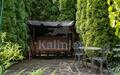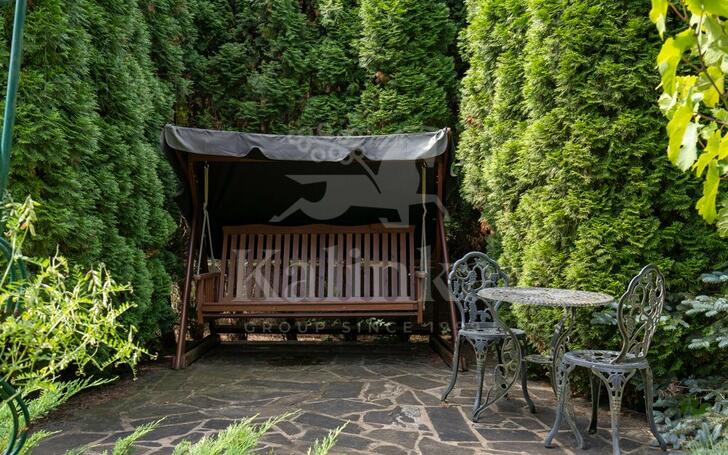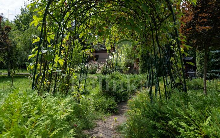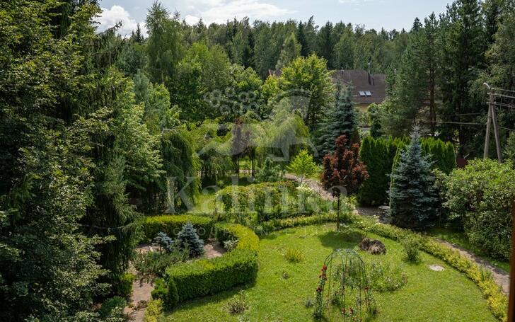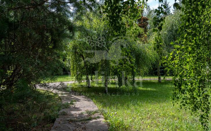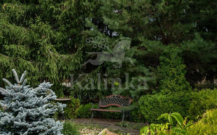 На участке создан парковый ландшафтный дизайн с вековыми елями, плодовыми деревьями (груши, яблони, смородина), розы, сирень. Отдельно расположены