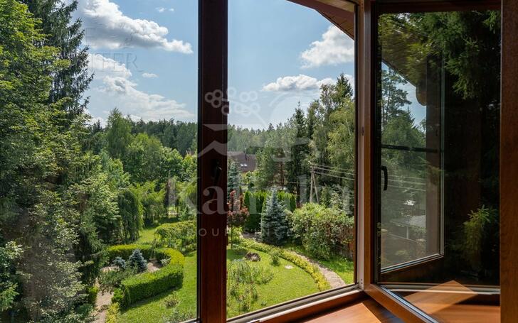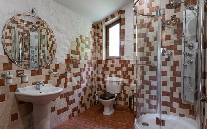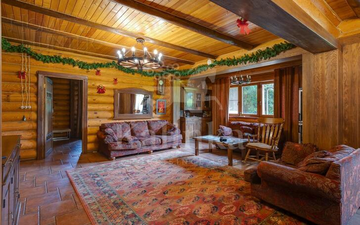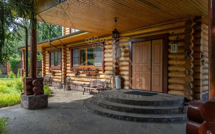 Площадь основного дома 350 кв. м. 3 уровня, оцилиндрованное бревно (диаметр 28). Дом оснащен всем необходимым для постоянного проживания. В интерьере использованы высококачественные материалы ведущих итальянских и немецких производителей: выключатели Fontini, кондиционеры Daikin, смесители Nikolazzi, на кухне установлена элитная техника SMEG. Установлены качественные системы очистки воды, газовый котел Viesmann, установлены стабилизаторы напряжения. Интернет. Спутниковое телевидение.