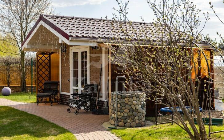 В доме установлено видеонаблюдение, на участке разведен автополив.