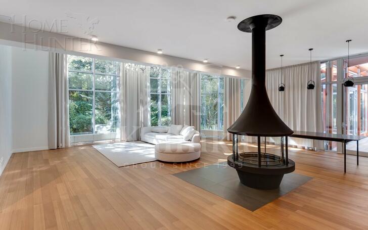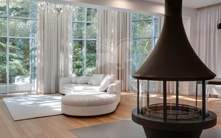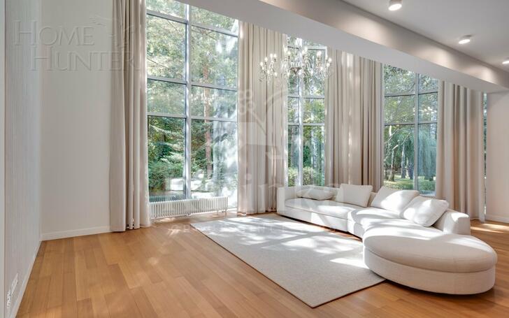 Стильный, современный коттедж 534 кв. м. на лесном участке 0,5 гектар в камерном поселке в Новинках. В доме большая площадь остекления, второй свет и высокие потолки, просторные помещения, дровяной камин. Роскошный интерьер укомплектован изысканной мебелью и предметами декора. В санузлах установлена сантехника известных производителей.