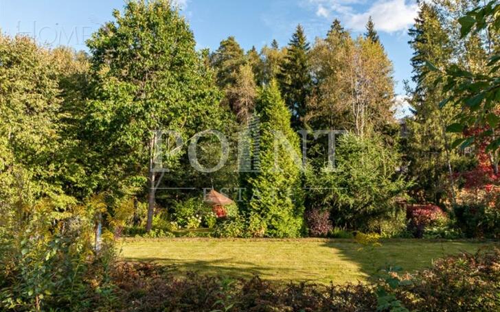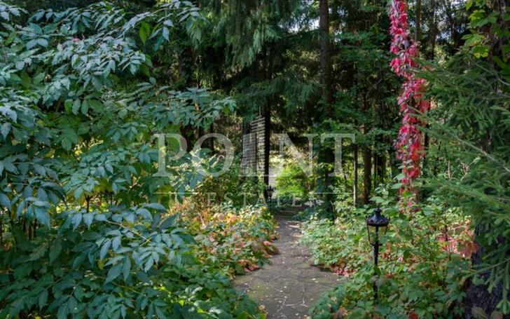 Лот: 88004. Загородный особняк в четыре уровня площадью 783 кв.м под ключ с мебелью располагается на просторном лесном участке 48 соток с превосходным ландшафтным дизайном в премиальном коттеджном поселке "Николино". Комфортная планировка. На первом уровне (цоколь) находится СПА-зона с бассейном, сауной, душевой и комнатой отдыха, санузел, зимний сад, котельная, постирочная. Второй уровень занимает гостиная с камином, кухня, совмещенная с обеденной зоной, кинотеатр, гостевой санузел, холл, гардеробная, терраса, гараж на два машиноместа. Третий уровень включает в себя четыре спальни с санузлами и балконами, две из которых со своими гардеробными, кабинет, холл. Четвертый уровень (мансарда) отведен под три спальни, санузел, холл и комнату отдыха. Ландшафтное оформление дополнено атмосферным прудом и ротондой. Отдельно построен гараж для двух автомобилей с квартирой для персонала на втором этаже.