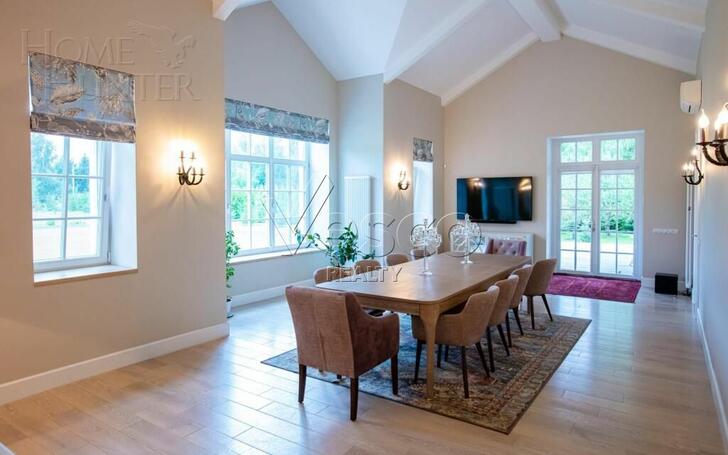 На участке площадью в 1 гектар украшенном ландшафтным дизайном, расположен новый, одноэтажный и просторный особняк. Усадьба утопает в тишине и отличается высоким статусом.