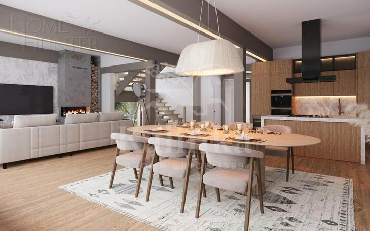 Дом построен с использованием самых современных немецких технологий и имеет класс энергоэффективности A++. В нем установлена система приточно-вытяжной вентиляции с рекуперацией. Архитектура и планировка дома отличаются максимальной эргономичностью.