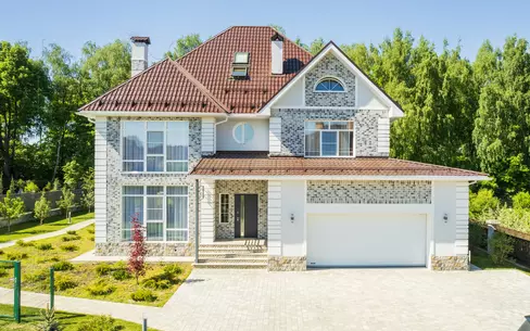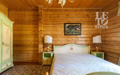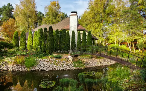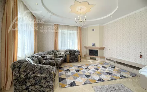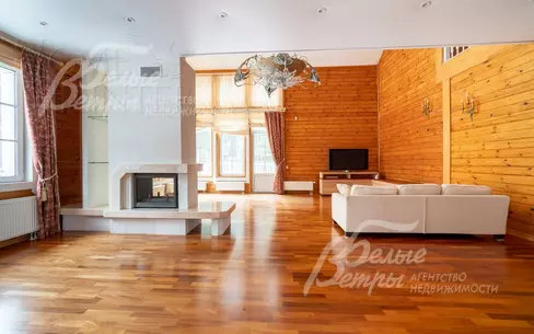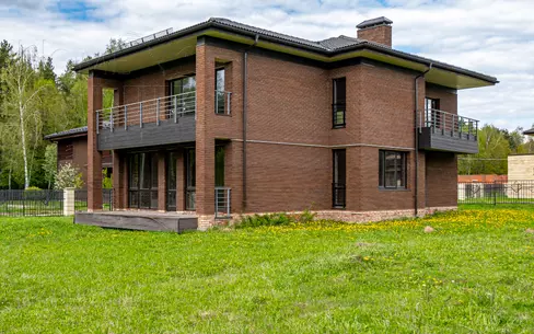 №151905 Успенские поляны Меблированный дом 400 кв. м на участке 20 соток с ландшафтным дизайном и лесными деревьями. Фасад дома облицован кирпичом и темным деревом. Внутри выполнена пышная отделка в классическом стиле с использованием натурального