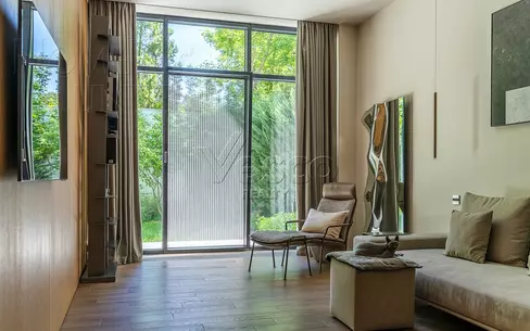 Код объекта в БД Агентства: 462-904, Киевское шоссе, 10 км от МКАД, Московский писатель ДСК (Абабурово). Новый элитный дом в стиле хай-тек в камерном коттеджном поселке на 10 домов. Дом с премиальными инженерными системами и роскошной