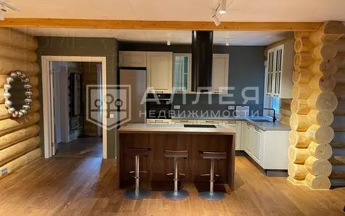 lD 558017 Продается уютный бревенчатый дом в закрытом поселке “Геодар”. Дом частично меблирован и изготовлен из экологически чистых материалов, таких как ошкуренное бревно зимней рубки для стен, монолитная железобетонная плита для фундамента,