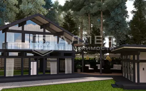ЛОТ: h3354 ДОМ: Новый дом с панорамными окнами и вековыми соснам в охраняемом коттеджном поселке. Дом построен по немецкой технологии Fachwerk. В доме современная и функциональная планировка, высокие потолки. Из просторной кухни - гостиной