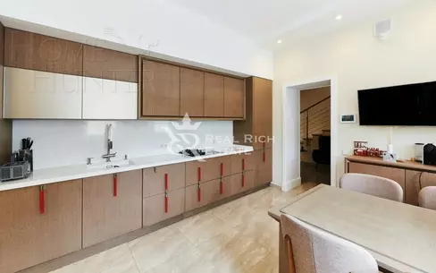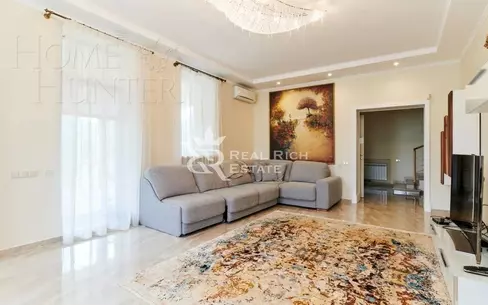 ID 539763. КП Жуковка. Современный одноэтажный дом, дом построен и отделан из дорогих и качественных материалов, установлена система видеонаблюдения. Планировка дома: холл, гараж на два машиноместа, санузел, гардероб, винный погреб, гостиная с