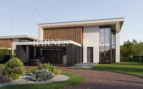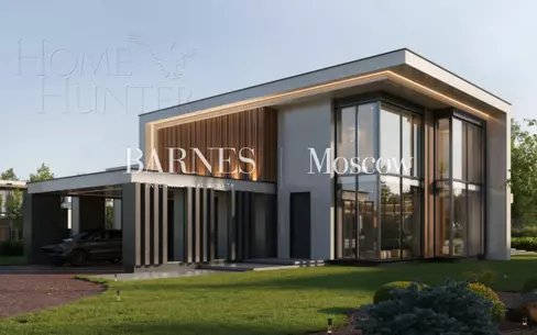 Лот 551768.Новый дом бизнес-класса (на 4 спальни, в мастер-спальне 2 гардеробные комнаты + сан узел с панорамным остеклением) площадью 520м.кв (монолит/кирпич). Крытый гараж с панорамно-секционными воротами на 2 машино-места и террасой 100м.кв., над