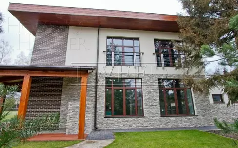 №165126 Новинки Стильный, современный коттедж 534 кв. м. на лесном участке 0,5 гектар в камерном поселке в Новинках. В доме большая площадь остекления, второй свет и высокие потолки, просторные помещения, дровяной камин. Роскошный интерьер