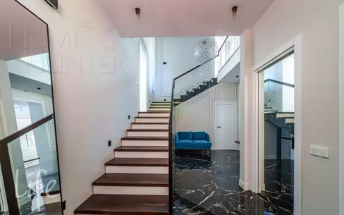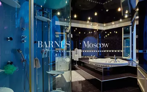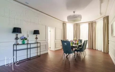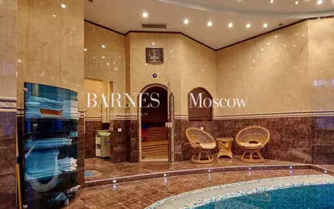 Новый современный особняк с эксклюзивной отделкой расположен прямо в центре стародачной коттеджной застройки деревни Жуковка на удалении от Рублево-Успенского шоссе. Планировкой дома предусмотрена шикарная гостиная с двусторонним паровым камином,