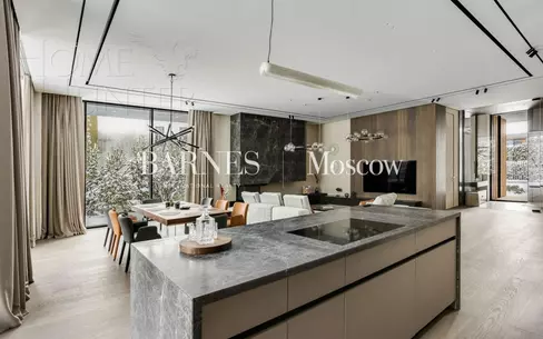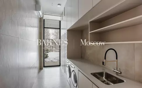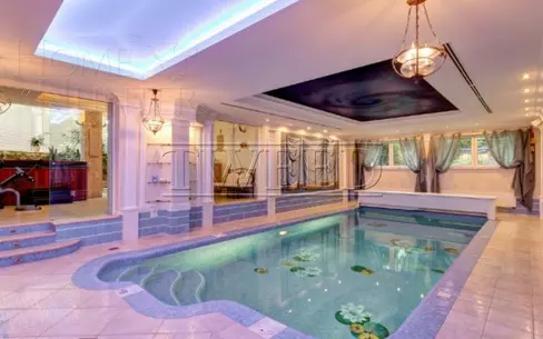 №109274 Екатериновка Меблированный дом 1831 кв.м в коттеджном поселке Екатериновка. Эксклюзивная мебель и аксессуары Ralph Lauren. Планировкой дома предусмотрены: 5 спален, 9 ванных комнат, кинотеатр, 5 больших гардеробных, 20-метровый бассейн,