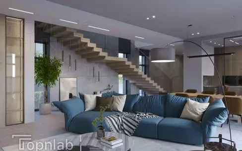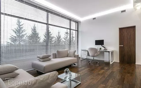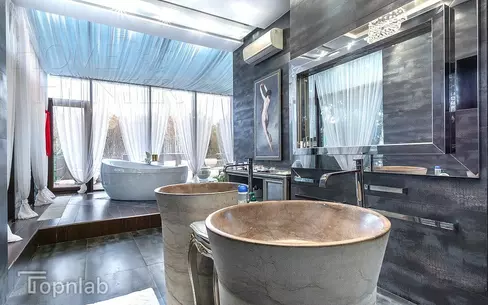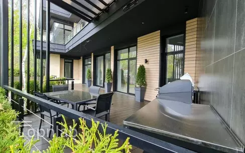 Современный дом находится в тихой части поселка «Monteville». Выполнен дизайнерский ремонт в современном эко-стиле. В отделке использованы панели ценных пород дерева, широкоформатный керамогранит, современная многоуровневая подсветка, позволяющая