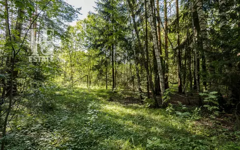 Участок с лесными деревьями недалеко от реки Истра. Газ, электричество и канализация проходят вдоль участка. К участку ведет асфальтированная дорога. Поселок охраняется, въезд на территорию осуществляется через КПП. Участник AREA - Ассоциации