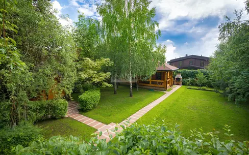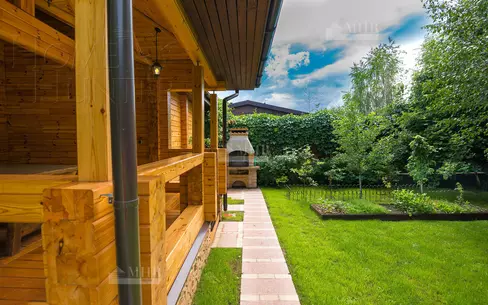 Лот 37864. Предлагается комфортный деревянный дом площадью 300 м 2 , расположенный в окружении хвойных деревьев на приватном роскошном участке 30 соток, в престижном КП Горки-8 на Рублево-Успенском шоссе в 16 км от МКАД. Участок находится в тихом и