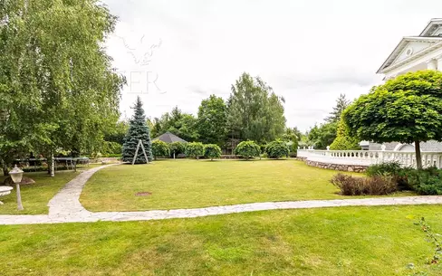 ID: 14575 Домовладение в престижном поселке «Ларюшино-2», всего в 28 км от МКАД по Рублево-Успенскому шоссе, впечатляет своей элегантной архитектурой в европейском стиле. Просторный дом площадью 800 кв. м расположен на лесном участке в 40 соток с