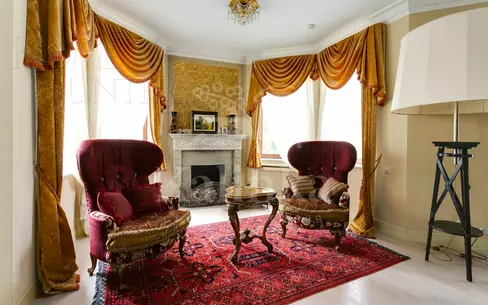 ID 2660. Дом: Особняк расположен в живописном поселке Подмосковья Николино. Фасад дома выполнен в викторианском стиле, с использованием характерного темно-красного кирпича и белых декоративных элементов. Интерьеры выполнены в едином ключе,