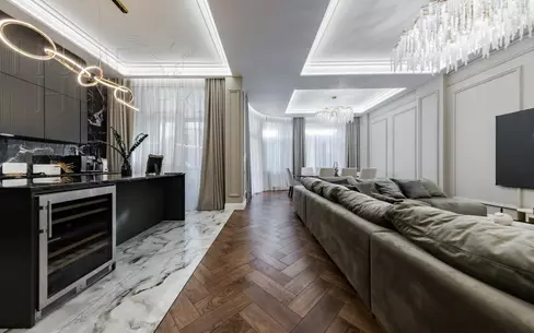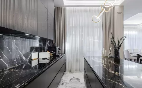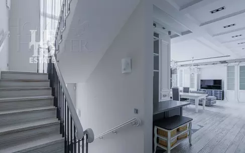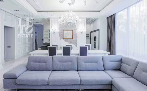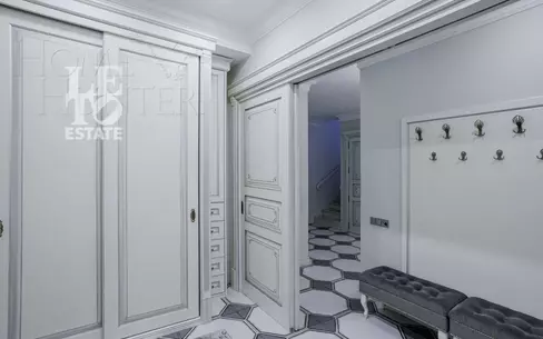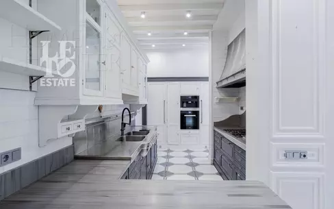 Загородный 4-х уровневый дом с бассейном и лифтом площадью 600 кв.м. В доме выполнена качественная отделка в современном стиле. Цоколь: бассейн, сауна, с/у, постирочная, бойлерная, гараж на 4 авто. 1 этаж: прихожая с гардеробной, кухня - столовая
