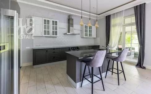 №197867 Новорижский Предлагается на продажу роскошный двухэтажный дом площадью 277 кв. м на участке 6,5 соток в элитном охраняемом поселке Новорижский. В доме выполнен дизайнерский ремонт. Он полностью меблирован и укомплектован всей необходимой