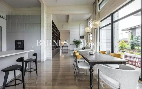 ID: 22740 Домовладение в классическом исполнении в коттеджном посёлке «Павловы озёра», всего в 14 км от Москвы по Новорижскому шоссе. Дом площадью 450 м² расположен на участке 12 соток, в окружении тишины и архитектурной утончённости. Жильё под