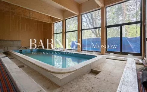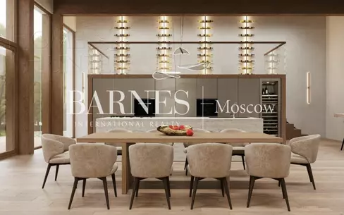 Лот №15734. Дом под ключ 900 кв.м. на участке 14.00 соток. Количество спален: 4. Коттеджный посёлок «Подушкино ТСЖ», Рублево-Успенское шоссе, 9 км от МКАД. Беседка, барбекю, дом охраны, парковка на 2 а/м, видеонаблюдение, ладншафт. Цоколь: гараж на