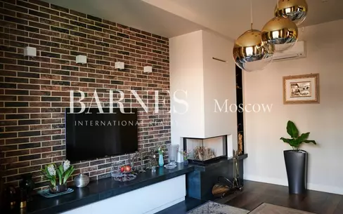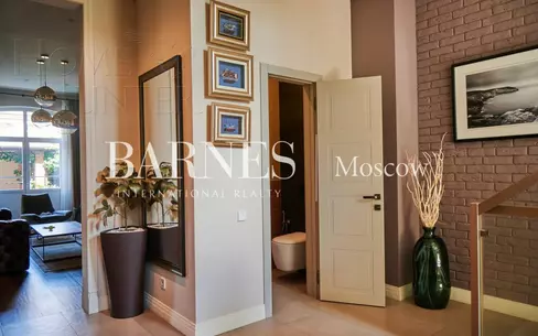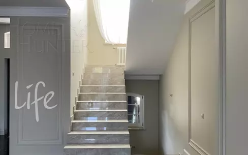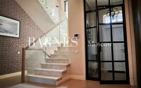 №119727 Ильинка Лейнхаус Предлагается таунхаус 375 кв.м на участке 3.3 сотки в камерном охраняемом поселке Ильинка Лейнхаус. Таунхаус расположен в глубине поселка, вдали от дороги, с видом на поле и лес. Перекрытия железобетонные, потолки 3, 5 м,