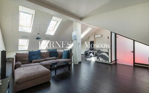 Двухуровневая квартира в малоквартирном кирпичном доме. Общая площадь - 309 кв. м. Функциональная планировка - квартира разделена на две зоны. В первой расположены: жилые комнаты, гардеробные, большая кухня-гостиная, малая кухня, подсобные