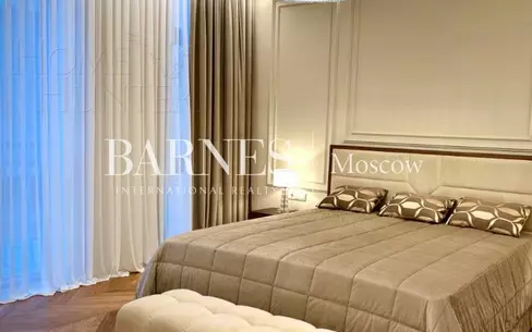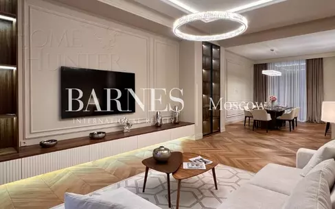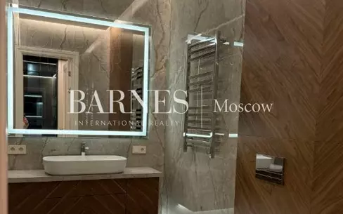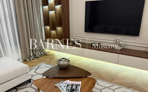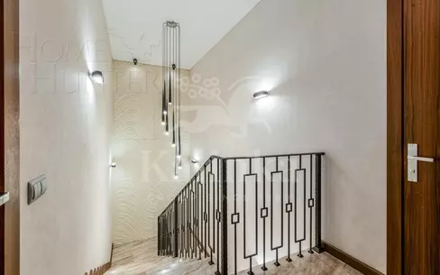 ID 11 826. Park Avenue. Таунхаус площадью 310 м² расположен на полевом участке 2,7 сотки. Фасад в райтовском стиле облицован травертином, лиственницей и мрамором. В отделке современного интерьера использованы дорогостоящие материалы, установлена
