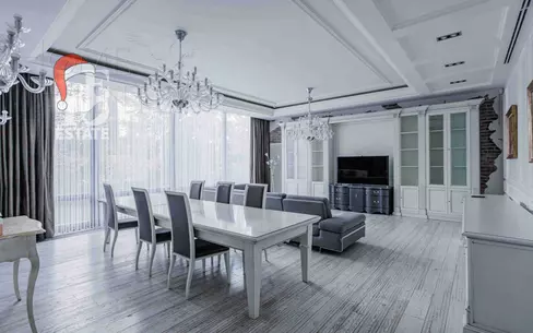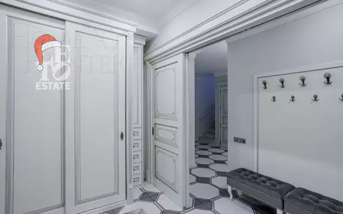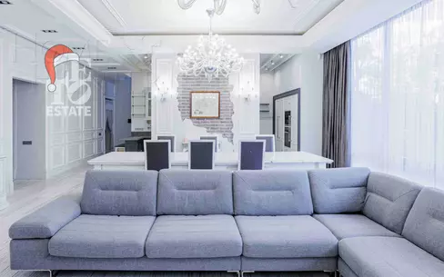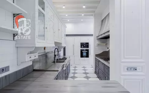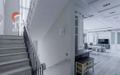 Двухуровневая квартира в малоквартирном кирпичном доме. Общая площадь - 309 кв. м. Функциональная планировка - квартира разделена на две зоны. В первой расположены: жилые комнаты, гардеробные, большая кухня-гостиная, малая кухня, подсобные