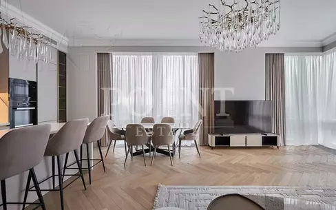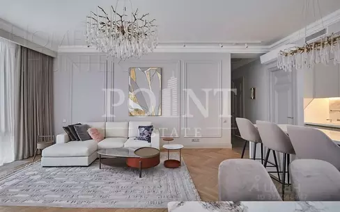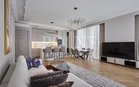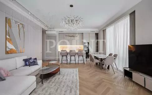 ID 280 771. Просторная квартира с 2-мя спальнями в комплексе премиум-класса «Воробьев дом» в районе Раменки. Квартира общей площадью 99 м² расположена на 2-м этаже. Выполнена авторская отделка в современном стиле, на полу уложены паркетная доска из