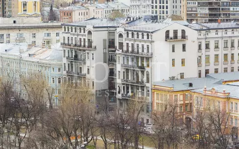 Роскошный двухуровневый пентхаус на 6 и 7 этажах в клубном элитном доме на Патриарших прудах площадью 640 квадратных метров! Потолки высокие!! Окна на 3 стороны: на ул. Б. Никитская и во двор. На первом уровне: три спальни 35-27-16 кв.м,