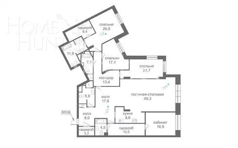 3-КОМН. КВАРТИРА С ОТДЕЛКОЙ 181 М² НА 5 ЭТАЖЕ
